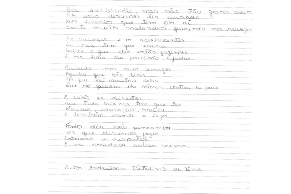 Texto produzido por uma criança participante do Projeto Arte Livre do ano de 2013 promovido pelo Conselho Estadual dos Direitos da Criança e do Adolescente, cujo tema é: a proteção… Continue a ler »AL TT Paudalho 2013