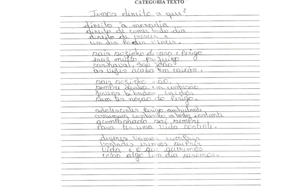 Texto produzido por uma criança participante do Projeto Arte Livre do ano de 2013 promovido pelo Conselho Estadual dos Direitos da Criança e do Adolescente, cujo tema é: a proteção… Continue a ler »AL TT Moreilândia 2013